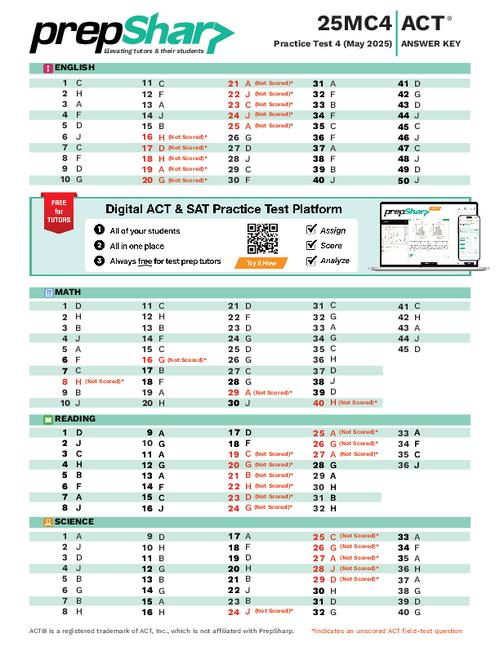 PrepSharp is not affiliated with the ACT®, SAT®, or PSAT®