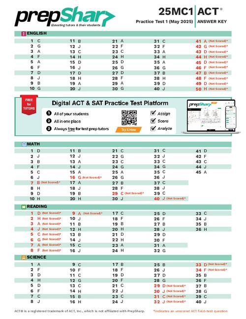 PrepSharp is not affiliated with the ACT®, SAT®, or PSAT®